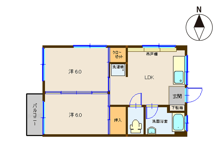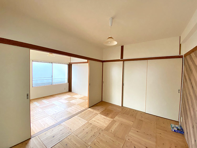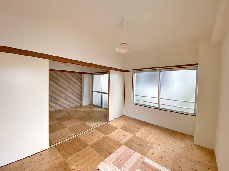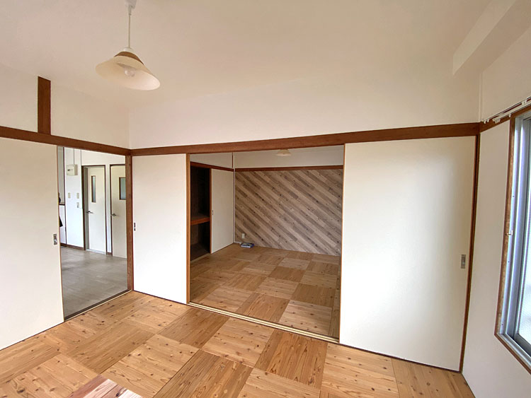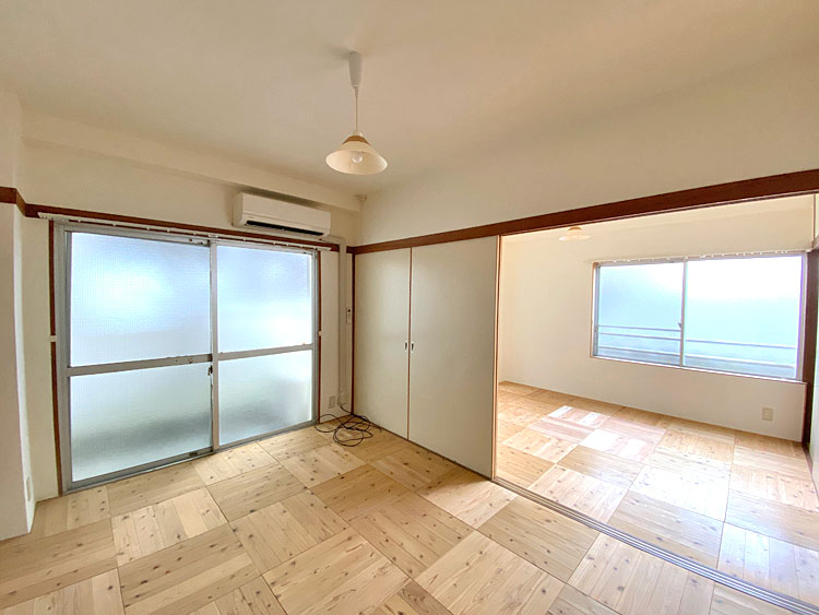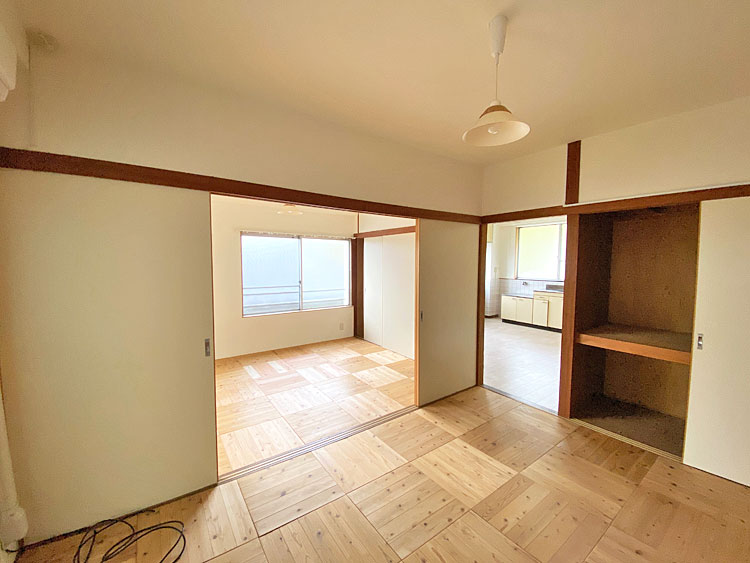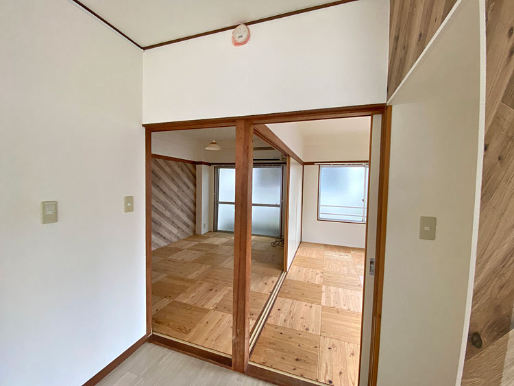 こちらの2DKは、洋室2部屋の仕切りは4枚引戸となっています。