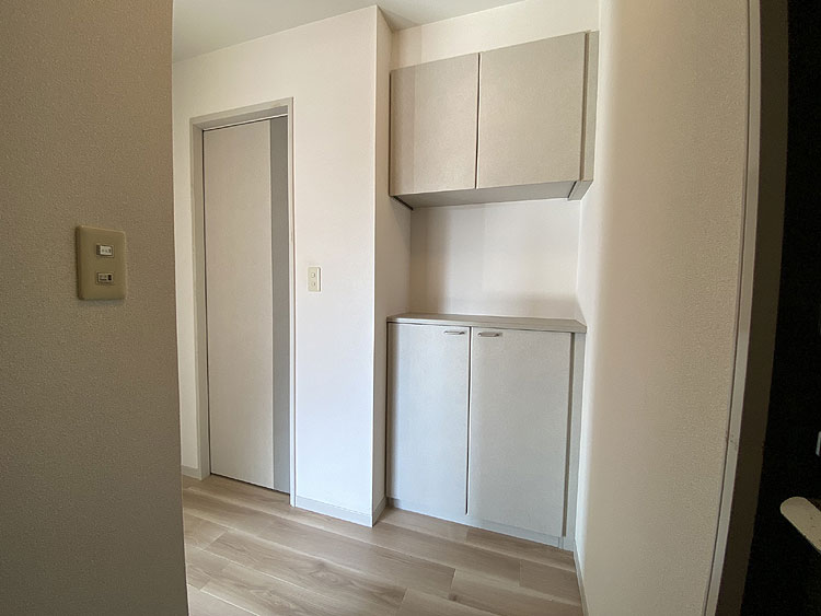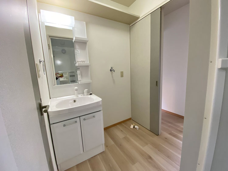 洗面等水周りには何かと便利な棚付!押入れ、クローゼットの上部にも棚が付いています。